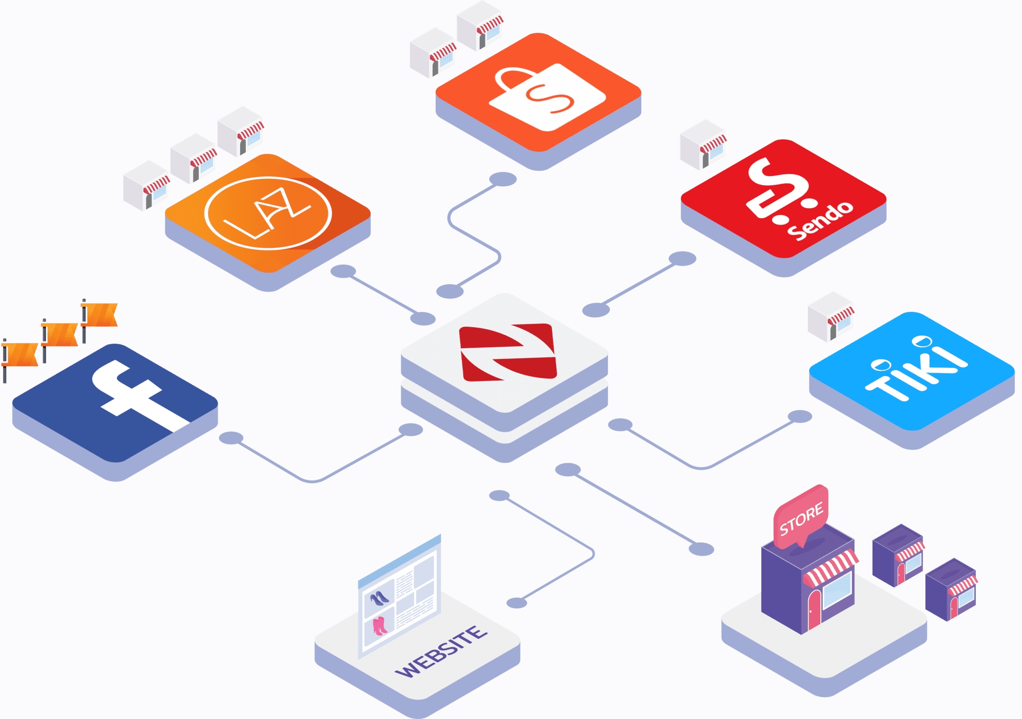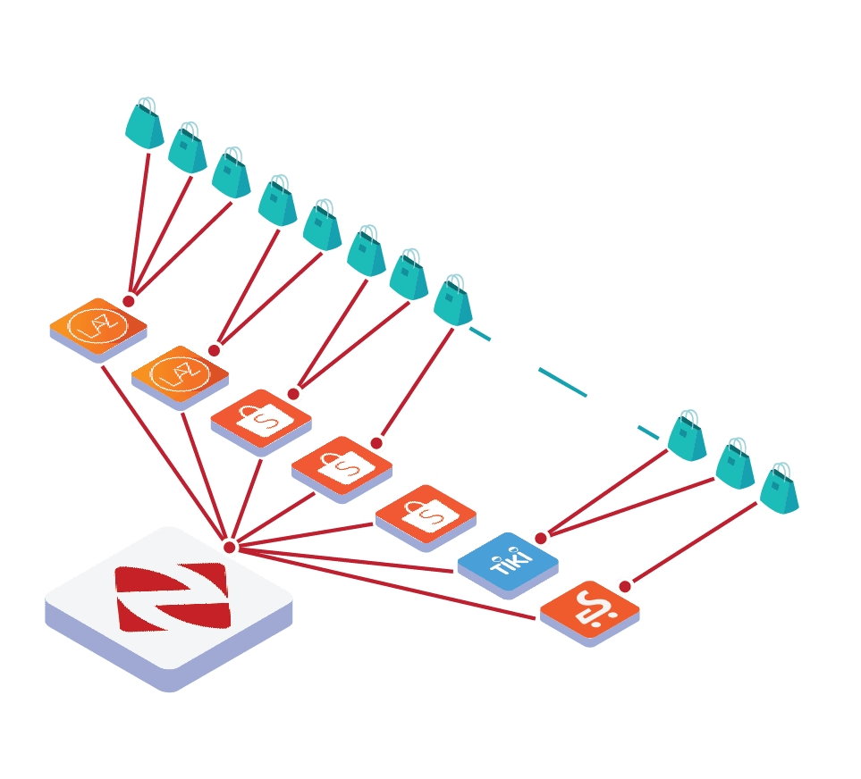 Liên kết nhiều sàn: Shopee, Tiki, Lazada, Sendo.